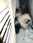It was grungy Inside the barn, just a storage place for extra boards and round, black drums, a utility trailer and a few metal pipes. The wind had broken the roof and more winds bent it back. The owner and I tiptoed through the leftovers and made our way to the scuttling noises that came from the extra wall of plywood propped on its side, nails dangerously exposed. He tilted the plywood forward. I startled! A gangly buzzard baby scurried away to hide. It’s downy, stale-yellow feathers showed splotches of black, as if it were trying to grow into a color.
